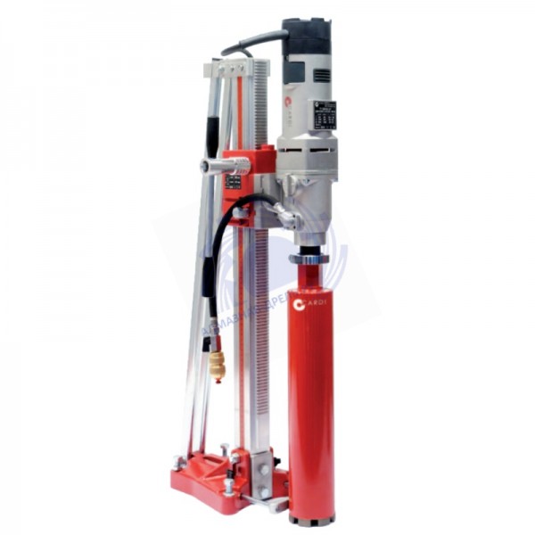 Установка алмазного бурения Cardi 200 предназначена для сверления отверстий в кирпиче, в других абразивных материалах, а так же в бетоне и армированном бетоне. Состоит из двигателя T1 200-EL и стойки Leonardo 200. Стойка и двигатель идеально сбалансированы для рекомендуемого диаметра сверления. Коронки до Ø200 мм устанавливаются без использования проставки для крепления к двигателю. Установка алмазного бурения cardi 200 - сверление только с использованием воды. Технические характеристики: Двигатель T1 200-EL Тип двигателя электрический Напряжение питания, В 230 Мощность, кВт 2,2 Макс. мощность, кВт 2,5 Макс. Ø коронки, мм 200 Макс. Ø с проставкой, мм 300 Диапазон сверления, мм 30 - 200 Ход каретки, мм 577 Количество скоростей 3 Холостой ход, об мин 540 / 1300 / 1800 Под нагрузкой, об/мин 385 / 920 / 1280 Станина в комплекте Leonardo-200 Соединение 1¼″ и ½″ Сверление под углом да Угол наклона 0 - 45° Вес, кг 18,9 Производитель Cardi Страна производитель Италия Артикул 79630